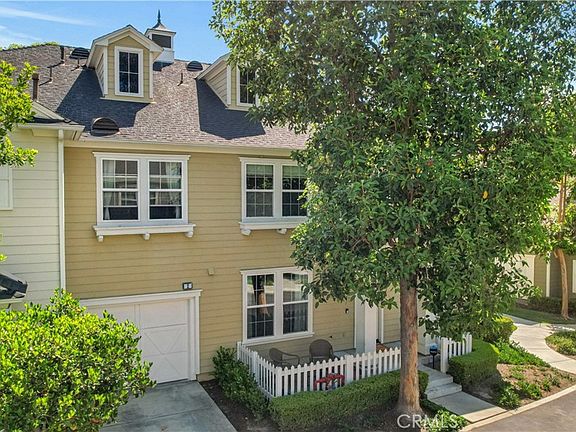 Located in the heart of Ladera Ranch, this charming Cape Cod-style home is just what you've been waiting for. As you enter this corner property, you are welcomed by a storybook patio enclosed by a white picket fence, a perfect spot for barbecues and enjoying the beautiful Orange County weather! The freshly painted 1296 sq ft home features TWO MASTER BEDROOMS upstairs, each with an en suite bathroom and spacious closet, and main family areas downstairs. The bright kitchen features white cabinetry, quartz countertops, stainless steel appliances, and a walk-in pantry. The dining area opens to the large living room with wood floors throughout. Natural light floods the interior through tall windows lined with custom shades, and the home also features updated LED lighting and new ceiling fans. A downstairs half bathroom, spacious indoor laundry room, and direct access garage with driveway complete the home. Just a short walk away are award-winning schools and endless amenities, including green spaces; pools; splash pads; a water park; a skate park; tennis, pickleball, and basketball courts; hiking and biking trails; and so much more. This home is 100% move-in ready and a definite must-see!