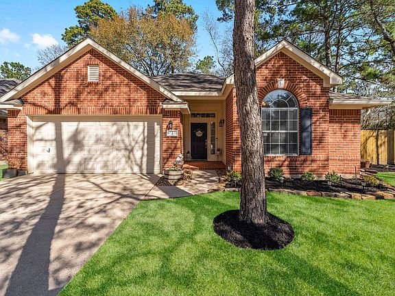 Beautifully updated single story home in Alden Bridge situated on a corner lot. Numerous recent upgrades including interior paint, flooring (No carpet), kitchen appliances, countertops and tile backsplash. Surrounded by mature trees and fresh landscaping with a functional floor plan featuring both formal and casual dining areas. Fabulous kitchen with quartz counters, tasteful backsplash and breakfast bar. Light and bright master suite with vaulted ceilings and ensuite with soaking tub and walk-in shower. Secondary bedroom also with vaulted ceilings and updated bath with shower/tub combo. Extended rear patio and large backyard offer plenty of space for entertaining. Easy access for commuters to Highway 242 & I-45, this home is immaculately maintained and ready for a new owner!
