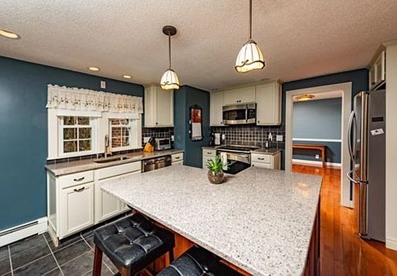 - Kit Dscrp: Main Level, Flooring - Hardwood, Countertops - Stone/Granite/Solid, Cabinets - Upgraded, Flooring - Stone/Ceramic Tile, Kitchen Island, Stainless Steel Appliances, Open Floor Plan, Recessed Lighting, Lighting - Pendant
