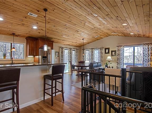 Leave your worries behind & escape to your mountain home 6 miles from downtown Hendersonville! Lower level can be used as short or long-term rental with its own outside entrance. This lovely home on .47 acres provides wooded privacy yet long range winter mountain views from your wrap-around deck. Open floor plan with wood laminate flooring throughout, kitchen with granite countertops & SS appliances. Two bedrooms & baths on main level with private deck off bedroom. Living room with vaulted ceiling features wood-burning fireplace & custom spiral staircase to lower level. Downstairs features kitchenette area, living room & bedroom with full bath. There is even a fenced area for the pets! Paved access makes suitable for Permanent Residence or Seasonal Getaway located just minutes from Dupont State Recreational Forest. **We are now in a multiple offer status & are making the call for Highest and Best Offers & Terms to be submitted by Thursday, 02/11/21 at 12:00 PM.**