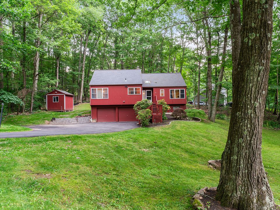 Nestled in the serene Shepaug Heights, 2 Beardsley Rd offers a perfect blend of comfort and style. With 3 bedrooms and 2.5 bathrooms, this home provides ample space for living and entertaining. The gourmet kitchen features a cozy breakfast nook and the open-concept living and dining area is filled with natural light, creating inviting spaces for gatherings and relaxation. Beautiful wood burning fireplace, built-ins and loft (currently used as office space) add to the charm of the home. The 3 bedrooms are located on the main level and the primary has an en suite bathroom. The lower level offers additional living space and has a half bathroom, laundry room and new sliders (2024) to walk-out to the yard. Recent updates enhance the home's appeal, including a new roof (2021), driveway (2023), well pump (2021) and water tank (2024). The majority of the windows were replaced in 2022, and all bathrooms were updated in the past 3 years. Hardwood floors were refinished in 2020, new vinyl/laminate in rooms & hallway, and the exterior of the house was painted in 2022. The property includes a 2 car garage, large two tier deck and a shed. Located on a quiet cul-de-sac near the Roxbury Land Trust with access at the end of the road to trails leading to the preserve and reservoir. Outdoor adventures are at your doorstep including hiking, kayaking, and scenic views. Easy access to New Milford's shopping, dining, and schools. Experience the best of country living with modern conveniences!
