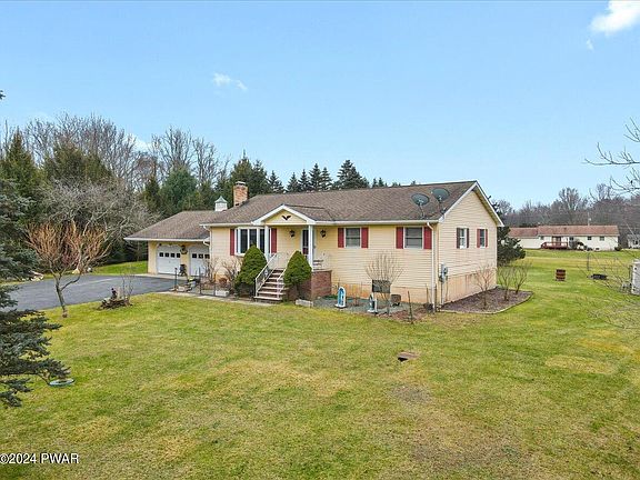 CHARMING CHERRY RIDGE ACRES RANCH HOME WITH 3 LARGE BEDROOMS, 3 FULL BATHROOMS AND A SPACIOUS LOWER LEVEL IN LIVING QUARTERS. LOCATED ONLY 5 MINUTES TO DOWNTOWN HONESDALE & WAYNE HIGHLAND SCHOOL DISTRICT! Step into the inviting living room where a cozy fireplace awaits, creating a warm ambiance. The well-designed layout features a spacious kitchen, dining area, and laundry room--all conveniently located on the first floor. The main bedroom and bath are also on the main level, offering a perfect blend of accessibility and luxury. An additional bedroom and bath provide ample space. The expansive deck overlooks the private backyard. A convenient shed stands ready for storing all your tools and equipment. The property is tucked away up a long driveway, providing a sense of privacy and seclusion. The lower level of this home offers a full living quarters with an additional kitchen, a large bedroom, and full bathroom, providing a comfortable and independent living space. The basement also offers unfinished areas, perfect for storage needs. For those in need of extra storage space, the attached two-car garage is a valuable addition. The location is ideal situated only minutes to schools, shops & restaurants in Honesdale!
