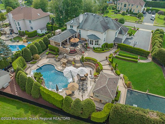 As you venture outside, you'll discover a backyard that is beyond imagination. An incredible in-ground heated salt pool takes center stage, surrounded by a meticulously designed outdoor kitchen, bar, and pool house. This oasis is the epitome of relaxation and entertainment.