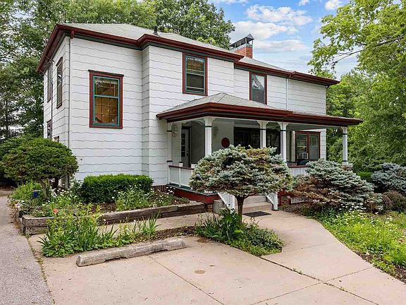 Charming 1920s Bella Vista gem just steps from downtown Iowa City! Nestled on a quiet enclave of only 8 homes, this one-of-a-kind property offers winter views of the Iowa River and City Park and is directly across from the river near Hancher Auditorium. Longtime owner since 1974 added a stunning 1991 expansion featuring a versatile studio with private entrance, kitchen and full bath—ideal for guests, in-laws or rental income. The main level includes a half bath for guests, along with a spacious primary suite with deck access, full bath and double closets. Upstairs offers 3 additional bedrooms and 2 full baths. Original hardwood floors, a beautiful fireplace, French doors and rich woodwork bring timeless character. Bonus: an additional sub-lot adds value and space. Property has functioned as a B&B and studio rental. Being sold as-is.