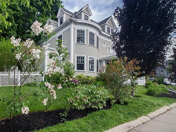 This outstanding Colonial Revival was the HP Hood family home. Built in 1910 on one of the most impressive streets in historic Spring Hill, this residence retains the grand dimensions of the original, very large mansion. The expansive interior is light-flooded from oversized window bays, has high ceilings, deep crown molding, and a precious stained glass bay in a charming alcove with a window seat. You will feel right at home enjoying the beauty of your surroundings or proudly entertaining your friends in a house that is oh-so perfect for entertaining. The kitchen with SS appliances, gas stove, vented hood, and wine refrigerator leads to the private patio, surrounded by a stone wall and flowers. The private fenced yard beyond the patio has raised beds for growing herbs and vegetables. The mr suite is spacious with en suite bath and walk-in closet. The lower level flex room has multiple uses, built-ins and extra storage. 2 side-by-side parking. Between Union/Porter/Davis Squares. T's.