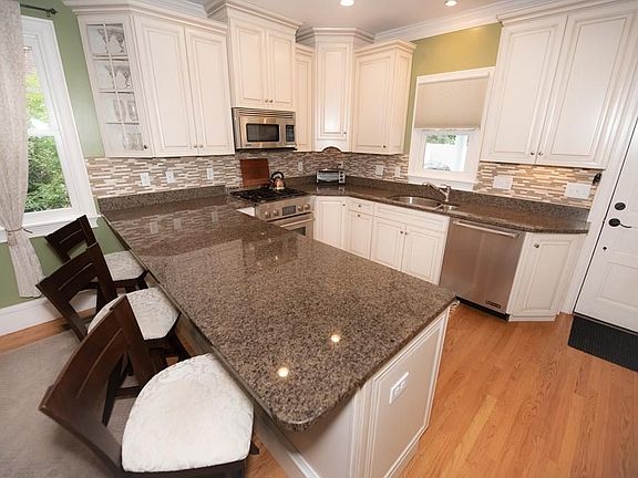 - Kit Dscrp: Flooring - Hardwood, Countertops - Stone/Granite/Solid, Breakfast Bar / Nook, Recessed Lighting, Dining Area, Open Floor Plan, Exterior Access, Remodeled, Closet, Deck - Exterior, Gas Stove, Crown Molding