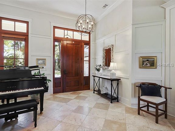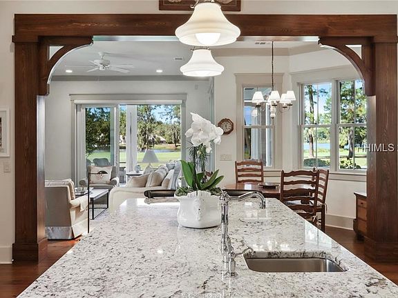 Your dream come true! This sunlit Lowcountry home embraces our envied casually upscale lifestyle. Designed w/ intention. Built w/ precision. Marked w/ quality. Antique pine floors anchor the standard for excellence, while custom trim & cabinetry, stone, brick & marble enhance it. Open to the FR, the no-expenses-spared Kitchen was created; function & style dominate the ideal culinary hub: Wolf, Sub-Zero, 2 ovens, walk-in pantry, multi-task island & breakfast dining. A lanai captures the magic of outdoor/indoor living w/ alfresco dining & a cozy FP. The LR & DR enjoy Belfair's best golf-to-lake vista. Today's home for tomorrow's memories.