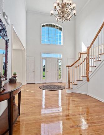 Just Upgraded and Enhanced! Magnificent 4357 sq ft beautiful Estate set upon a cornered wide premium lot and gentle rolling hilltop offering spectacular panoramic views of the serene prestigious neighborhood with breathtakingly gorgeous sunsets. Grand 2-story foyer, palatial windows, high ceilings, open airy floor plan, over-sized Andersen double hung and picture windows offer an abundance of natural lighting, chandelier w motorized lift for easy cleaning, ventilated closet shelving, polished hardwood ''silent system'' flooring, 1st level guestroom bedroom, spacious mudroom laundry room featuring a convenient second entrance to home, formal dining room and living room, freshly painted conservatory, study, King Size Juliet Balcony, high tray ceilings, freshly painted Chef's Kitchen showcasing a granite central island offering additional cabinets and roll outs for ample storage space, beautiful granite counter-tops, sizable 42'' cherry wood cabinets, crown molding trim, newer stainless steel appliances, enormous freshly painted walk-in pantry, upgraded recessed lighting, 12" ceramic tiles, breakfast bar, separate dining area with sliders leading out onto the private deck perfect for dining and relaxing in the crisp fresh air. The second level has been graced by an impressive king size Juliet balcony, second staircase and additional amenities including a spacious master suite with a sitting area and sizable walk in closet adjacent to the lushly designed bright master bath featuring a separate shower stall and double sinks for convenience. Additional amenities include a delightful Princess suite with an en-suite bath and 2 Jack-n-Jill bedrooms with oversize windows offering picturesque views. Create very special memories with family and guests in an elegant open Great Room accented by soaring ceilings and all-encompassing windows while enjoying the warmth and beauty of a wood burning slate surround hearth fireplace on chilly days and nights. Three zoned energy efficient HVAC, 300 electrical amps, 9 ft poured concrete walkout basement, 3 car side entry garage with inner home access and the added convenience of a supplemental storage room, newer outdoor lighting and sprinkler system, washer dryer, improved landscaping hardscaping and more! Commuter's dream offering Public transit, Park-n-Ride, major roadways, NJ Turnpike Exit 8A nearby.