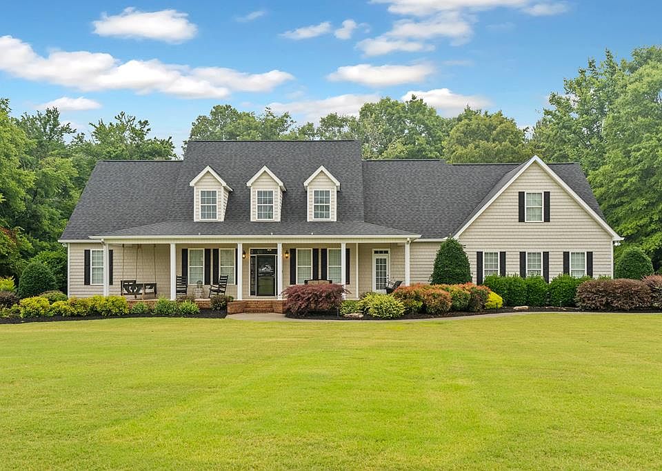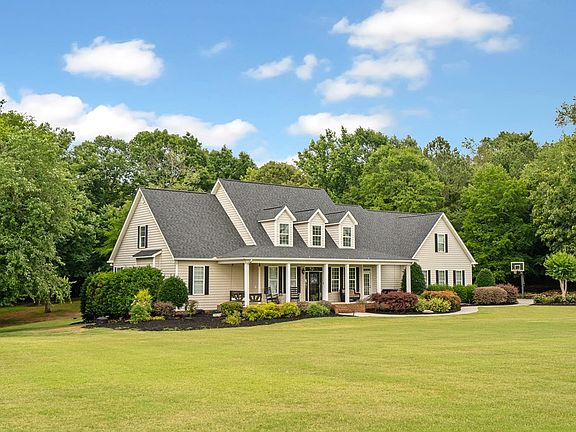 Beautiful CUSTOM-BUILT HOME IN THE QUIET, QUAINT EAGLE'S LANDING NEIGHBORHOOD. This home offers 5 bedrooms, 3.5 baths with a master on the main level. The open floor plan features a large living area that flows to the breakfast area and custom kitchen with granite counter tops and room for seating around the bar.  Large living room with hardwood floors and built-ins. The home also has a large separate dining and a breakfast area which is great for all entertaining needs. Office is right off the living room with double doors.  The other four bedrooms are upstairs, one with its own bathroom.  The other bath is in the hallway upstairs.  Half bath downstairs in the hallway. The property offers a large covered front porch and a back porch overlooking the inground pool.