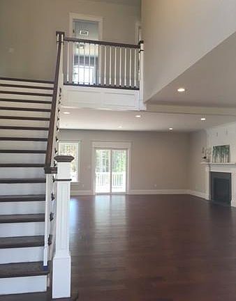 YOU'LL LOVE COMING HOME to this beautifully designed 3000 sq ft 4 BR 2.5 bath Colonial. A lovely blend of traditional and contemporary w/ 9 ft ceilings & a massive open floor plan. Entertaining is made easy from the 36 ft living room w/ FP, to the contemporary kitchen w/ granite & stainless & the wall of cabinetry w/ wine rack, & built in beverage refrigerator. Adjacent breakfast area is filled w/light from 2 sets of sliders leading to a gorgeous deck overlooking 1.84 acre lot. Mature trees & plantings add to the privacy. The 2nd level includes huge master suite w/ vaulted ceiling, his and hers walk in closets and luxurious full bath w/ full wall vanity, double sinks, soaking tub and beautiful over sized shower. 3 additional bedrooms & 2nd bath. Hdwd floors, crown molding, 1st floor laundry, walk in pantry & many more amenities. Enjoy this amazing home nestled on a cul de sac w/ only one other home. Sip a cup of coffee or a glass of wine & enjoy the sunset from the covered porch!