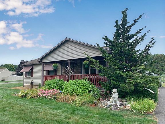 Cool exterior stone work and a generous front porch elevate the facade of this classic ranch home located in a lovely Rock Valley neighborhood close to Southampton. Vinyl siding, updated kitchen, sunroom, gas heat and wood flooring are just some of the nice features of this well maintained 3 bed/1 bath home. Maple cabinets, granite counters, stainless appliances and custom touches make the eat-in kitchen stand out from the crowd. A sizable wood floored living room is brightened by a large bay window. All 3 bedrooms are in convenient proximity to the full bathroom and feature wood flooring. A delightful 4 season sunroom just off kitchen leads out to the backyard and outdoor spa. Large double lot offers space for play, gardens and relaxation. The basement has the bonus of multiple built-in floor-to-ceiling storage shelves. Mins to I-91 and MA Pike. Easy access to HCC, the 'hamptons', Westfield and Holyoke. Don't miss this opportunity to be in your new home before the holidays!