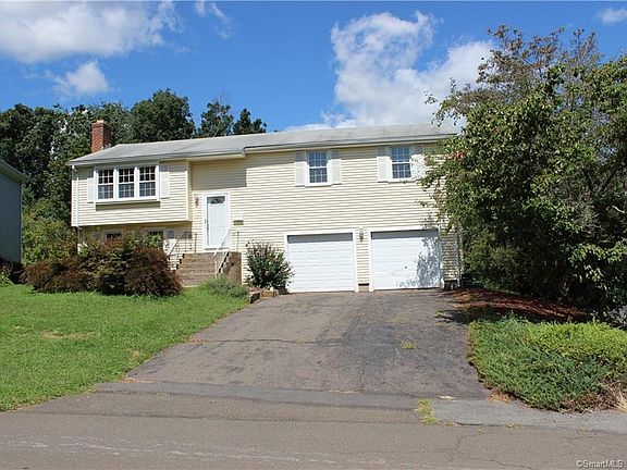 This home sits on a corner lot lined with trees giving the large backyard privacy from the road. On the main level you have a combined living and dining area giving the space an open feel. Down stairs you have a generously sized 2 car garage leading into the front to back family room/den area with fireplace. The fireplace is fitted with a pellet stove and a pallet of pellets included with the home ideal for supplemental heating in the winter months. The lower level also is fitted with the laundry area and a half bath. The homes vinyl siding provides easy exterior maintenance. Rounding out the home is the neighborhood feel with walk to elementary school as well as a pond to enjoy.