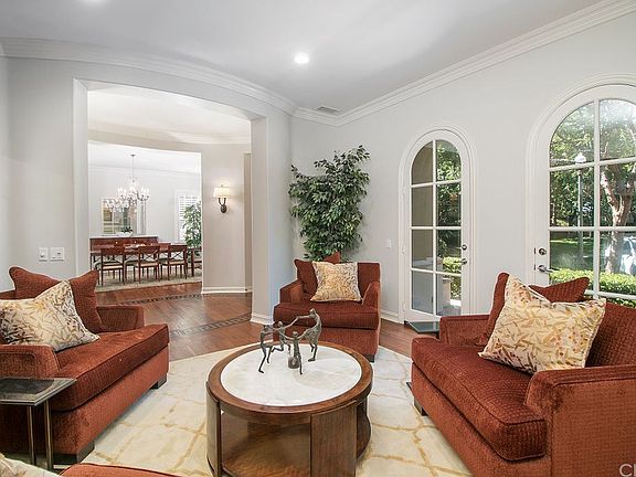 Exquisite five bedroom en suite Villa with guest casita nestled on a premium oversized cul-de-sac lot in the coveted gated Wyndover Bay community of Bonita Canyon. Welcoming formal entry and generous attention to detail in every room. Formal living room boasts custom built-ins and accordion doors leading out to front patio. Formal dining room also offering French doors extending the entertaining space to the front patio. Gourmet kitchen with custom cabinetry, butler's pantry and breakfast nook opening to spacious family room with fireplace. Upstairs are four bedroom en suites, each with updated bathrooms. Gracious master suite with luxurious custom master bath and walk-ins closet. Private balcony leading to newly remodeled guest casita/media or bonus room, complete with full bath and separate entry. Picturesque and private rear yard complete with spa, fireplace, BBQ, bar area, artificial turf and putting green. Three car garage with custom built-ins and storage. Remodel added custom Mud Room and extended the kitchen.