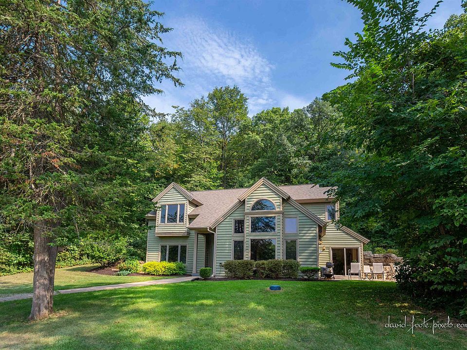 Stunning 3 bed, 3 bath turn-key Galena Territory retreat licensed for vacation rental and perched against a beautiful wooded backdrop on 1.26 acres in the heart of the Resort Core offering a private setting and convenience to all the amenities of The Galena Territory as well as the golf and dining of Eagle Ridge Resort & Spa! Built by long time Galena Territory builder Contemporary Homes, the well appointed home features quality finish work, attention to detail throughout and an incredible floor plan. Open main level with radiant in-floor heat houses great room style living area perfect for entertaining with large living room offering cathedral ceilings, lots of light, gas fireplace and gorgeous tile flooring, modern kitchen with granite counters, gorgeous cabinetry, more tile flooring and eat-at breakfast bar, open dining area with direct access to outdoor patio, and generous guest bedroom with adjoining full bath. Ascend to the upper level to find a large landing area overlooking the main floor, comfortable guest suite with cathedral ceilings and nicely appointed private full bath, and spacious master suite with more cathedral ceilings, alcove with two closets (not included in room dimension) and luxurious master bath with separate shower and whirlpool tub. Take in the natural scenery and treed views while you relax on the sweeping concrete patio with ample room for guests. Recent upgrades include updated front entry composite decking, new A/C unit (2021), new carpet in lower level bedroom (2021), new boiler for in-floor heating system (2021), and renewed landscaping. Sold furnished and to be transferred via separate bill of sale. Fifth lot dimension is 96.46.