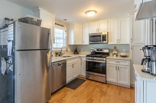 WELCOME to the desirable Georgetowne North neighborhood. This renovated 3 Bedroom 1.5 bath townhouse provides easy highway access to I495, I93, & Route 3 for commuters and ample space for those still at home. Step inside the bright and spacious living room that flows into the large eat-in kitchen complete with stainless steel appliances, beautiful quartz counters, and custom cabinets. The dining area is great for entertaining and has a slider to your private enclosed backyard and patio! There is also a half bath with laundry just off the kitchen. Upstairs, you will find a huge Master Bedroom with tons of closet space. The additional 2 bedrooms on the second floor offer even more room for work/play etc. There is a full bath at the top of the landing complete with a tiled tub and shower.