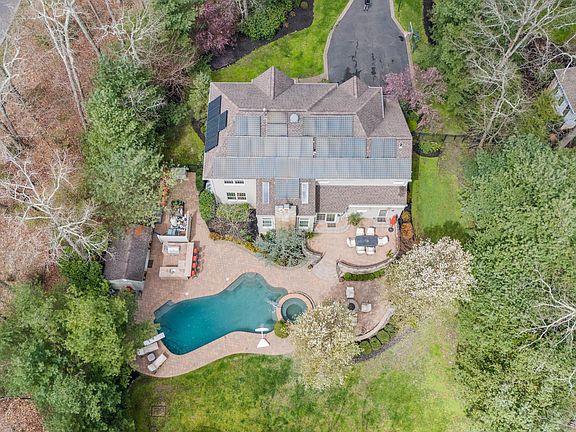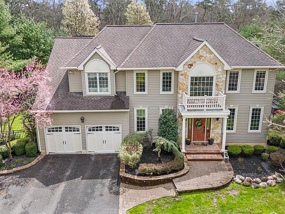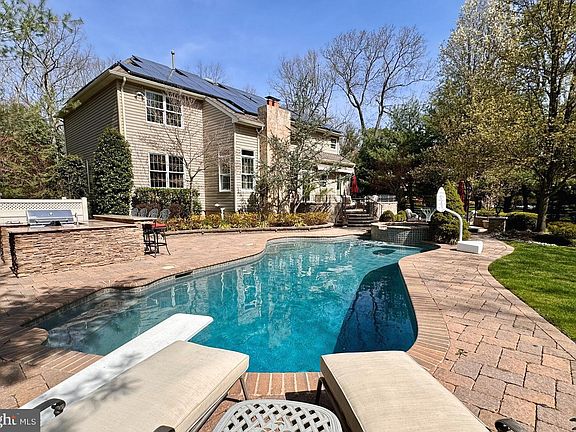 Welcome to 2 Braddocks Mill Road in Medford, offering 4 bedrooms, 2.5 baths, and amenities designed for upscale living. Nestled on a 1.72-acre private lot, this home presents a rare blend of sophistication and tranquility. A standout feature of this property is its fully paid-off solar panel system, ensuring the new owner will benefit from significant savage on electricity and earnings from NJ SRECs. The highlights of this home lies in its exquisite outdoor oasis, boasting a stunning gunite HEATED Salt Water Pool complemented by extensive hardscaping paver patios; an built in outdoor kitchen, firepit, lush lawn, wooded surrounding providing privacy complete perfect entertaining space. Stepping inside this home you will be greeted by two-story foyer with a wooded staircase with custom railings, leading up to a balcony area. This balcony overlooks both the family room and kitchen, creating a seamless flow between spaces. The home is designed for formal entertaining in the elegant living and dining rooms. The kitchen boasts tumbled stone, granite countertops, and stainless steel appliances, with columned separation from the two-story family room. The family room itself is a vision of comfort and style, with its stunning stacked stone fireplace, expansive windows adorned with plantation shutters, and views of the balcony above. On the first floor, you'll also find an office, a powder room, and a laundry room with an exterior door, rounding off the main level. The upper level continues the theme of luxury with hardwood flooring throughout. The master bedroom is a retreat in itself, featuring walk-in closets and renovated exquisite bath that includes a custom vanity, a custom-tiled spa-style rain shower, and a soaking tub for ultimate relaxation. Additional 3 spacious bedrooms offer ample closet space, and the hall bath is elegantly appointed. The fully finished basement adds an extra layer of versatility to this home, serving perfectly as a media room, gym, playroom, or a great space for entertaining. The basement also has a french drain system installed throghout. Attention to detail is evident throughout, with extensive white painted millwork, raised panel interior doors, 2 Zoned HVACs, and custom window treatments, including plantation shutters, adding to the home's distinct elegance. As a member of the Tamarac Lakes HOA and not only will you have access to the lovely hiking trails, numerous parks, baseball/soccer field, basketball courts, and tennis courts located in this exclusive Lake community, but you will also have residents-only access to a private beach area with boating, swimming, fishing docks, and a beautiful covered pavilion with picnic tables. If that isn't enough, as a member of the Waterberry Cove HOA as well, you will have access to the large lake located immediately behind the property for your swimming, fishing, and boating enjoyment! All of this is located in a highly rated school system, near major highways for an easy commute. Settlement after June 24.