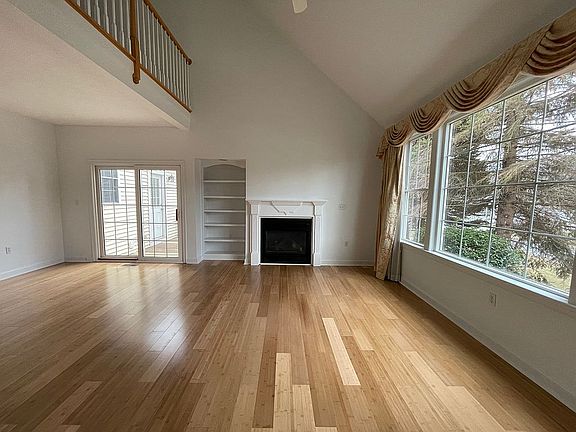 The living room opens to the deck, has a realistic looking (and WARM) electric fireplace, a HUGE picture window, and high ceilings that open to the loft above. (See pics.)