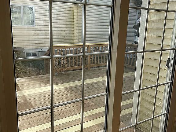 The condo is attached to a neighbor via a single wall in the garage. All that you can see of the attached unit from inside is a wall adjacent to your back deck.