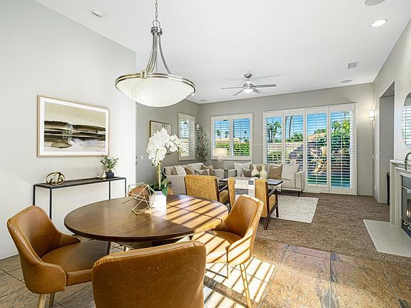 Welcome to 2 Brentwood, a home that perfectly blends style and functionality within the guard-gated Montecito community in Palm Desert. Boasting 3 bedrooms, 3.5 baths, plus an office that could easily be converted into a 4th bedroom, this property offers flexible living options to suit your needs. Located in a community with very low HOAs, this home offers incredible value and convenience.From the moment you step through the grand double doors, you'll experience a space designed for both comfort and connection.The living room, with its cozy fireplace, is ideal for relaxing or entertaining, while the formal dining room offers a refined setting for gatherings. The open-concept kitchen features granite countertops and custom tile, flowing seamlessly into the family room with its second fireplace and direct access to the backyard.Outside, the private backyard is perfect for relaxing or hosting, complete with a sparkling pool and spa with plenty of space for dining and lounging.The primary suite is a well-appointed retreat, offering a spacious en-suite bathroom, walk-in closet, and pool/ spa access. Two additional guest bedrooms with en-suite baths provide privacy and comfort.Plantation shutters throughout the home enhance natural light and privacy. Located near restaurants, shopping, and healthcare, this home offers convenience and elegance in one.Don't miss your chance to call 2 Brentwood home. Contact us today to schedule a private tour!