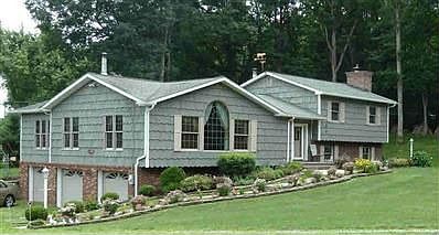 Dazzling contemporary 4 level split totally redone w/gorgeous addition in 1997 is in impeccable condition. Enter a great room w/vaulted/beamed ceilings and wood/coal stove. Walk through the French doors to the magnificent dining room w/ French doors to the deck. Granite and tiled skylit kitchen is so inviting. Remodelled bathrooms, separate den could be 4th br w/bath and a cozy family room w/fireplace. An acre of paradise, oversized evergreens for privacy, perennial beds and a bluestone walkway welcome you inside. 3 car garage, can fit 5 cars.