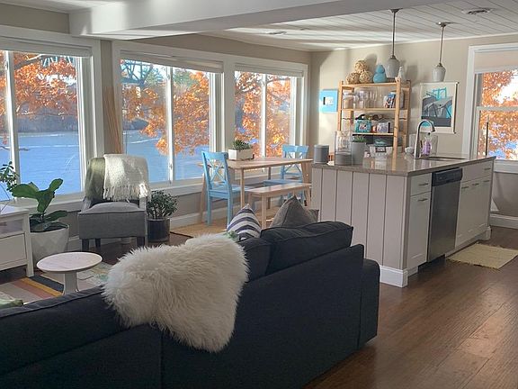 Architect designed and renovated apartment in Kittery. On the water. Private entrance. 2 bedrooms, 2 bath, 2 private decks, and 2 off-street assigned parking spaces. Silestone kitchen counter tops and stainless steel appliances. New floors through out. Master bedroom with master bath and washer and dryer in unit. Included is heat/ac, hot water and trash pickup. Shared access to water dock.