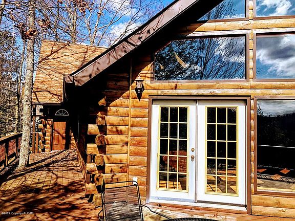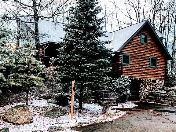 LOG HOME THAT LEADS TO A WATERFALL AND OVERLOOKS THE MOUNTAINS IN THE GATED COMMUNITY OF EAGLE ROCK RESORT IN THE BLUE MOUNTAINS OF PA! Sit on the deck and hear the soothing sound of the waterfalls as you take in the view of the mountains , Take a hike from your property along the babbling stream that leads to the waterfall. The perfect retreat mountain log home for all of log home enthusiasts''