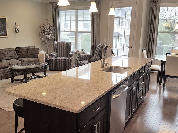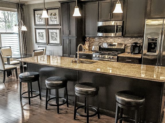 All the Bells and Whistles: This unit was a model home and is full of upgrades. You'll appreciate the moldings, flawless hardwood flooring, granite counter tops, tile backsplash a 10 foot kitchen island a frameless glass shower in the well appointed master bath, and a gorgeous granite topped bar with wine cooler in the spacious family room! The open floor plan on the main level makes entertaining a breeze. On the upper bedroom level you will find 3 well sized bedrooms all with walk-in closets. In the master you will appreciate the dramatic vaulted ceiling and the en-suite bathroom. Located close to the clubhouse, tennis courts and the beautiful pool of the Timber Oaks community. This like-new unit will ring your chimes.