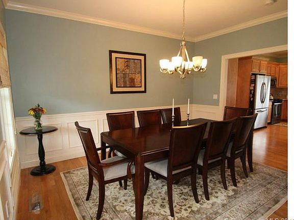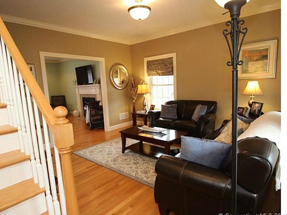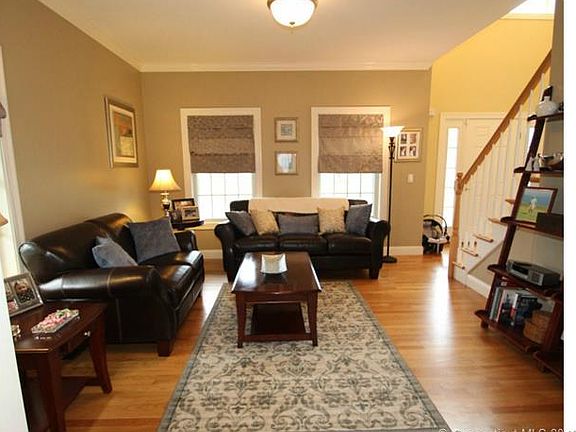 Less than 5yrs old gorgeous home with wrap around southern style front porch, and awesome open concept floor plan, two story foyer, 10' ceilings, gleaming wood floors in all rooms, 3.5 baths and 3 car garage, high ceilings, abundant crown molding and architectural details. Amazing kitchen/family room area with plenty of counter space, stainless appliances, bar area with wine rack and red birch cabinets. Second floor features 3 full bathrooms on second floor, with a separate sitting area, large laundry room with storage space, tile in all bathrooms. Luxurious master bedroom suite with tray ceilings, and beautiful master bath with granite, Jacuzzi tub, double sink and walk-in shower. Level lot with nice mature trees, professionally landscaped, 12x28 trex deck, sprinkler system, and side walk. One of best locations in town for commuting, just steps from South Windsor line and shopping areas. Relocation addendum in mls att: All offers need to include the following language: "The Brookfield Rider Relocation Agreement is attached and made part of this contract".