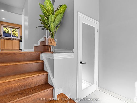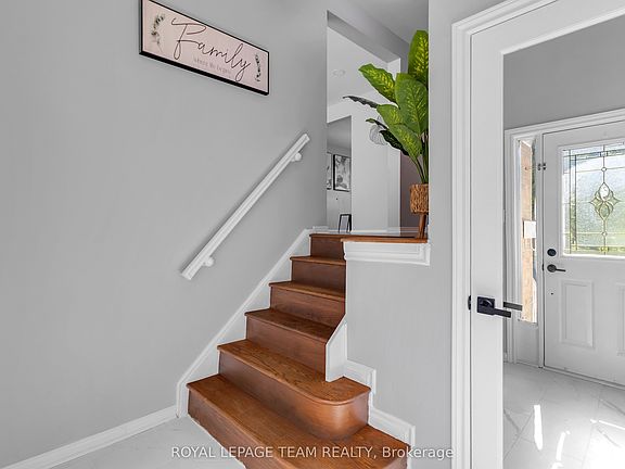 This bright and stylishly updated detached home in desirable Leslie Park offers 3 bedrooms plus a basement bedroom or office and 3 baths, with exceptional privacy and no rear neighbours. The spacious foyer with Calcutta ceramic tiles leads up to a large living room with a cozy fireplace, open to the dining area and a kitchen featuring new ceramic tiles, pantry, and a powder room. Upstairs, the primary bedroom includes a walk-in closet and 3-piece ensuite, along with two additional bedrooms and a main full bath. All bathrooms have been redesigned with new vanities and toilets. The finished basement provides a fourth bedroom or office, laundry room, and organized storage. With a drive-down driveway, elevated main and upper levels filled with natural light, and a private fenced backyard with deck and gazebo on a corner lot, this home also includes a newer furnace and A/C (2017), a new garage door opener, and an attached garage with inside entry in a prime location near Baseline Road, transit, shopping, schools, and parks.