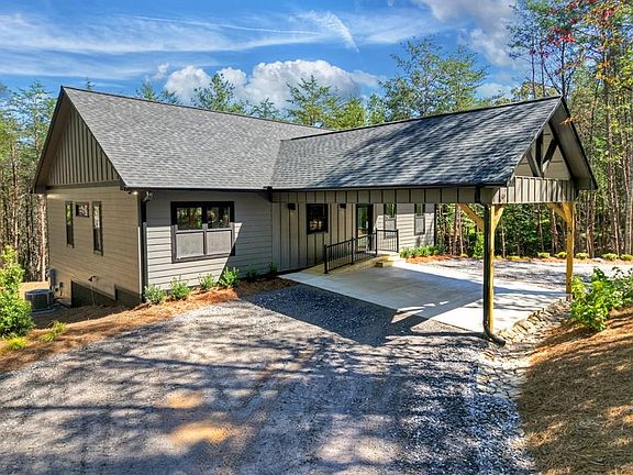 Experience brand-new construction and refined mountain living in this thoughtfully designed single-level residence, perfectly blending modern comfort with timeless appeal. Step inside to a bright open-concept floor plan where the gourmet kitchen takes center stage, complete with a large island, stone countertops, stainless appliances, and custom cabinetry. The dining area flows seamlessly into the living room, anchored by a sleek contemporary gas fireplace, creating the perfect environment for both intimate evenings and effortless entertaining. The indoor living space opens up to the living space outdoors with a large covered deck, where you can enjoy serene views of lush forestry and a private, landscaped yard. The home offers three spacious bedrooms and two designer bathrooms, each curated with custom cabinetry, elegant tilework, and sophisticated lighting. A generous laundry and pantry room adds convenience and function. Designed for ease of living and a low-maintenance lifestyle, the home features wheelchair accessibility, a circular drive, professional landscaping, and an attached two-car carport. Under the home is a standing level crawlspace for plentiful storage. Just moments from Downtown McCaysville, Blue Ridge, and all the recreation, dining, and lifestyle amenities of North Georgia, this property offers both practicality and luxury. Professionally staged and offered with furnishings available for separate purchase, this move-in-ready retreat is an exceptional opportunity. Additional acreage may also be acquired, creating the option to expand your private mountain haven. Call today for an exclusive tour!