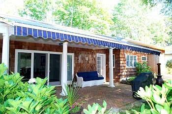 Beautifully renovated cottage in Bellport Village South. Home boasts 2 bedrooms and 2 full bathrooms. Living room with fireplace, formal dining room with french doors out to covered brick patio, den with cozy Vermont Casting stove. Renovated kitchen with granite counter tops. Both Bedrooms have sliding doors that open onto private brick patio with retractable awning. Home is centrally air conditioned and has gas heat. Outdoor shower for added convenience. Property also features in ground sprinkler system. (Internet 5609504-1/26/2011)