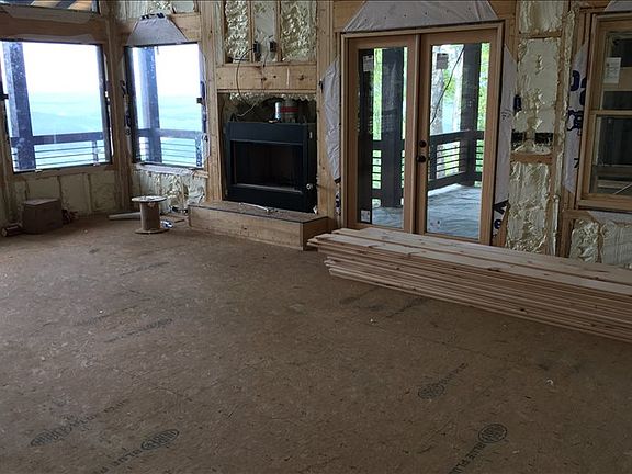 Mountaintop Manor overlooks awesome view of Lake Blue Ridge & the mountains...true Craftsman Quality with Rustic Flair & Distinct Detail...4bdrm/3.5bath Lodge Style cabin is perched on gentle tract with large hardwoods & nice landscape, living area boasts "sky high" ceilings & "wall of windows" overlooking water, unique & rough sawn finishes throughout, plentiful windows, porches & decks galore, custom cabinetry & counters, upscale lighting & plumbing fixtures, full finsihed terrace level boasts guest qtrs/rec room, massive stone fireplaces, oversize party porch w/ fireplace, "sleeping porch" off master suite, copper accents, gated Aska Area community minutes from downtown BR, Toccoa River & lake, end of the road privacy, firepit & more! Hurry & customize to your liking - under construction & moving along! Near USFS trails & waterfalls...Will not disappoint!