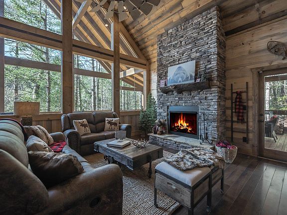 Million Dollar views from this gorgeous new construction lodge! Foundation is in and framing will begin soon. This custom home features a wall of windows & all the rustic features we love! Step inside to find an alluring great room w/ floor to ceiling stone fireplace, abundant natural light & soaring ceilings. Large covered party porch features wood burning fireplace & large deck space for outside dining. Main level bedroom features en suite bath, granite countertops & walk in tile shower. Upstairs feature a large master suite w/barn door, large bath w/walk in tile shower & private balcony to enjoy the mountain views. Full finished terrace level features a HUGE additional bedroom & bath perfect for teens or bunk room. Large wet bar, additional fireplace & great room. Stunning 180 degree views of Rich Mountain. Located between Ellijay & Blue Ridge. View photos are of actual lot. Home photos are of a similar home.