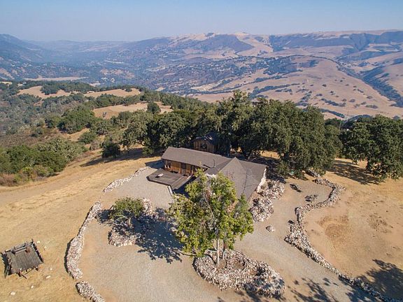 Captivating panoramic mountain and valley views! Truly some of the best views in all of Carmel Valley can be found on Buck Mountain. One feels like they are back in the "Old West" with the river rock and wood exterior and the old fashion front porch.Featuring a rustic main home and separate guest house or "Bunk House" on 10.92-acres, this property will not disappoint. Main residence has two bedrooms and one bath as well as a spacious living room with dining area and an open kitchen, perfect for entertaining. A massive rock fireplace graces the living room as well as a wood burning stove. Open beam ceilings and hardwood floors can be found with the exception of the kitchen, hallway and bathroom. The bunk house features a cute bedroom, bathroom, and separate living space. The "Bunk House" would also make a great artist studio.The windows on the structures are dual pane and the composition roof was replaced within the last three years on the main house. This is the perfect full time residence or ideal vacation retreat. A large rear deck is the spot for BBQ's. This property has potential for horses as well.Lovely sunrises and sunsets and many a star filled nights can be found in this slice of heaven.
