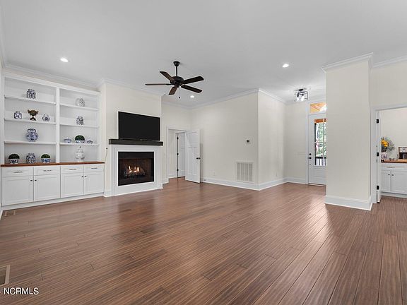 WOW! Seller is offering up to $20,000 ''use as you choose'' in incentives which could be used for loan buy-down, closing costs/points. This 'BETTER THAN NEW' home is incredibly well-built & well-maintained & sits majestically on a large lot to allow for privacy, while offering golf course views from both the back & front. Located on a quiet street in popular Foxfire, this home is just a few minutes' drive to Pinehurst. There is NO HOA however, residents of Foxfire Village can enjoy amenities such as 3 pickleball courts and the 51-acre Village Green Park. This home boasts tall ceilings & plenty of windows allowing for lots of natural light & custom plantation shutters throughout the home. Features include gorgeous real hardwood floors on both levels, fireplace with gas logs, blower & remote already set up, quartz countertops in the kitchen & bathrooms, large walk-in pantry with custom shelving & built in cabinet perfect for a coffee bar. The kitchen includes a large island, under cabinet lighting & stainless appliances, including a gas range. The split bedroom floor plan has 4 generously sized bedrooms, all on the main level. The primary bedroom suite features a 'to die for' bathroom with two sink areas with extra counter & storage space divided by a tall linen cabinet, a walk-in tiled shower, large additional storage/linen closet, and private water closet. The huge walk-in closet conveniently leads to the laundry room, which includes a custom butcher block folding area over the washer & dryer, which convey. The 2nd level includes two additional rooms & a full bathroom. The exterior includes a covered porch for entertaining & relaxing, a fenced backyard with paddock style fencing with wire, professional landscaping & hardscapes. Garage w/overhead storage & Tesla charging. Additional storage & two 50-gallon hot water heaters are located in the walk-in crawlspace. TV above the fireplace, porch swing, shelving in the crawlspace convey. Staging items do not convey