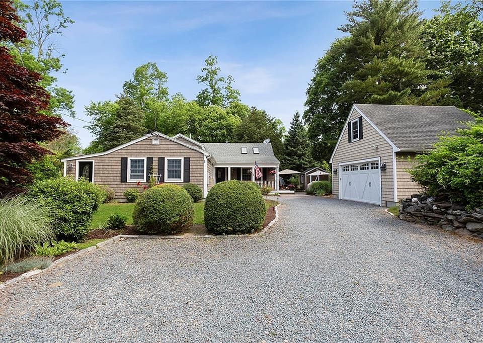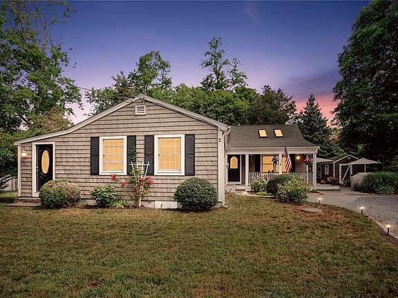Adorable Jamestown Shores cottage located at the end of a quiet street, this property is a tranquil sanctuary. Offering a shaded patio, wonderful landscaping, a detached garage with 2nd level storage. Expanded by the current owners, they have meticulously mained this home. The exterior offers vinyl cedar style shingle appearance, maintenance free trim, and composite porch decking. The open and airy eat in kitchen with corian counters, cherry cabinets, leads to a light filled sunroom. There is a first floor bedroom and bath, oversized living room with stone accented gas fireplace, and vaulted office/study which could serve alternately as a bedroom. The 2nd floor provides a master suite with private bath. The gleaming cherry floors, custom millwork, trim details, and other features make this a truly space cottage. Originally the structure was part of the Beavertail Golf Course Club House, and other sections were barracks, moved to this location in the 1940's. This home is ideal for year round or a summer getaway, offering updated mechanical systems with central air, new well pump. Enjoy the island life, yet minutes from Newport, or easy commute to Providence. Jamestown is the "Jewel of Narragansett Bay".