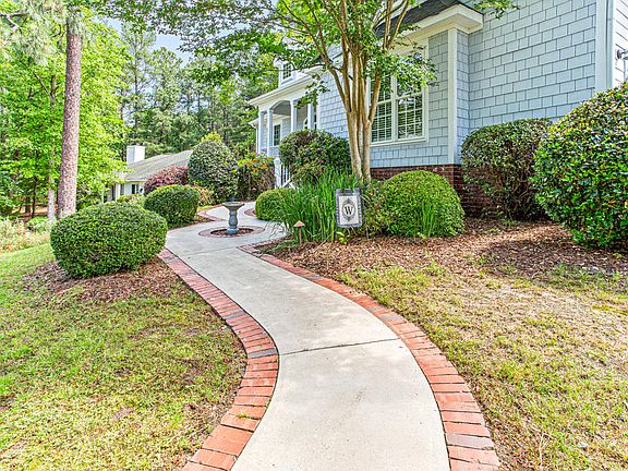 This beautiful 4 bedroom/3 bathroom cottage on a quiet cul-de-sac near Lake Pinehurst, boasts over 3,000 square feet of living space. Home sits up on a hill with view of pond from the covered front porch. Upon entering the home you are greeted with wood beams, a cathedral ceiling and floor to ceiling stone fireplace. Brazilian cherry wood floors run throughout the main living space and owner's suite. Split floor plan with 3 bedrooms and 2 bathrooms on main level. Tucked privately over the garage is an additional bedroom, bathroom, den and flex space. Wonderful rear outdoor entertainment area including a covered 29' back porch, brick patio, fenced in back yard and professional landscaping/lighting. Transferable Pinehurst Country Club Charter membership available! Additional features: hand scraped hardwood floors in two additional downstairs bedrooms and upstairs den, speakers on back porch, surround sound in upstairs den, propane gas line for grilling area, roof August 2012, garage door January 2014