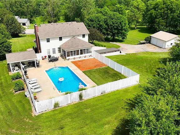 A Dream Home Awaits - Welcome to this well-maintained and updated one-owner home nestled within a serene stretch of countryside yet located conveniently close to the city and airport. This enchanting two-story home sits on 1.83 acres and offers the perfect blend of comfort and elegance. Ascend the staircase, adorned with plush new carpet, to discover 4 bedrooms and 2 bathrooms, the primary bedroom has ample space for rest and relaxation. A newly remodeled primary bathroom has luxurious finishes for a spa-like feel. As you step inside, the updated kitchen with its gleaming granite counters, new glass top double oven and freshly painted cabinets, ready to inspire culinary creativity. The warmth of the brick fireplace and the gleam of hardwood looking tile floors create a cozy yet sophisticated ambiance in the family room. The newly finished downstairs area, featuring sleek LVP flooring and a stylish wet bar, promises endless entertainment possibilities. Outside, an inviting in-ground pool shimmers under the sun, complemented by a sunroom and an outdoor kitchen perfect for dining under the sky. The white vinyl fence with beautiful landscaping is the perfect backdrop for this area. New Roof in 2017 and New HVAC System in 2019.