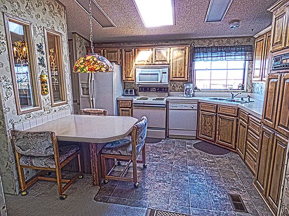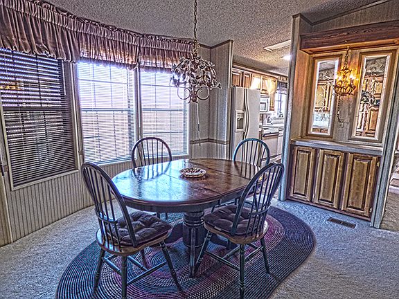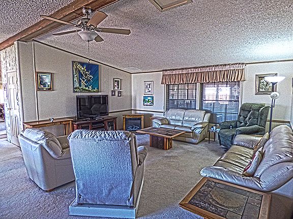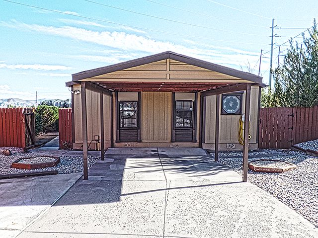 This is a unique opportunity… beauty, views, upgrades and lots of privacy! The home is immaculate and spacious. Flooring is in great condition. High end steel shutters offer uncommon heat and light control at your fingertips. Large open floor plan with built-ins. Entry foyer. Kitchen has a huge walk-in pantry, built-in dining table and lots of storage. Separate dining room. Large laundry room comes with washer, dryer and storage. Large bedrooms. Beautiful outdoor space, one of the largest private lots in the park! Large wood deck + elevated deck with Pergola looks over the city views! Large landscaped lot. Huge covered/enclosed patio. Shed. Fully fenced. Carport. Lot Rent: 656/mo | Includes: None