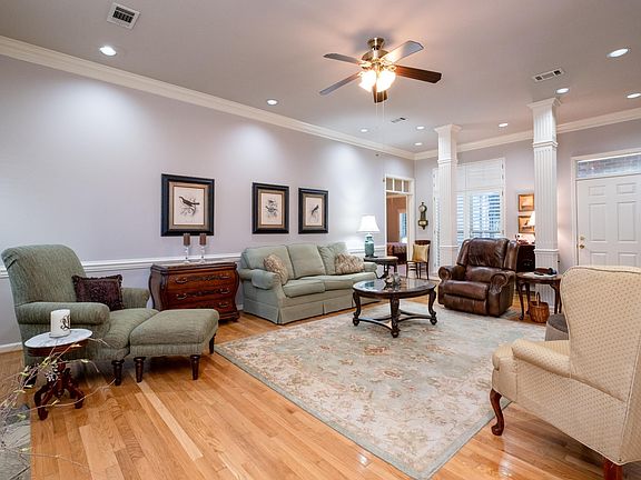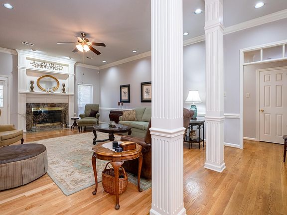 Charming one level home with appealing split floorplan. Spacious living area with tall ceilings, built-in cabinets and gas log fireplace. Wood floors throughout the living areas as well as the kitchen. Formal dining room (possible office space too) opens to large eat-in kitchen. Updates in the kitchen include newer appliances (electric cooktop, wall oven and dishwasher) and quartz counters. Nice sized walk in pantry also. Off one side of the living area are two guest bedrooms and large hall bath. Lovely primary suite apart with spa bath and huge closet. Enjoy the plentiful plantings in the backyard from the fantastic deck across the back. Under house storage. 3 car side load garage. Come See!