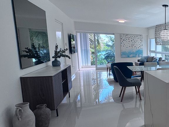 Beachfront Seaside Serenity Awaits! Experience an exceptional luxury lifestyle. Immerse yourself in the ultimate coastal lifestyle where every day begins and ends with the calming sound of waves and breathtaking ocean views! This thoughtfully designed living space, offers a spacious open-concept layout and full-length windows that flood the space with natural light and frame stunning views of the sea. Enjoy refreshing cross-ventilation and soothing ocean breeze from your private balcony- your personal slice of paradise. 6 months or more allowed! The heart of the home is a modern quartz countertop kitchen, outfitted with top-of-the-line appliances and elegant finishes. Also includes four A/C units, a high-efficiency washer and dryer, storage space, one king-size bed, one queen-size, plus two twins. and two balconies. With high-end finishes, tasteful decor, and full furnishings, this turn-key residence is ready for you to move in and start living the beachfront lifestyle you've dreamed of. Set in an exclusive building with only two units per floor, ensuring privacy and a peaceful atmosphere in a mostly residential setting, ideal for those seeking a quiet and secure living environment. For added convenience, a partial generator powers essential indoor equipment, internet, eleavators, and a water cistern ensures uninterrupted service. Nestled in one of San Juan's most desirable neighborhoods, this residence is located in Condado's sought-after Ocean Park community and best beach. You'll enjoy the proximity to top-tier schools, hospitals, supermarkets, and be just minutes from Old San Juan, Club Nautico, San Juan Bay Marina, and the vibrant T-Mobile District. All this, just a 10 15 minute drive to Luis Munoz Marin International Airport. A rare opportunity to enjoy refined urban living with world-class amenities, schedule your private showing today! **Utilities are not included. Internet is installed with Fiber optic. **Housekeeping is included twice a month. Long term Utilities will be collected based on consumption: Electricity, water & Internet Fiber. At a monthly basis.