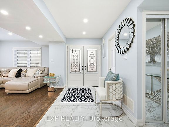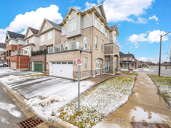Rare to find, move-in-ready luxury on a premium corner lot: elegant three-storey, detached residence with rear laneway access and over 3,000 sq ft of total living space. Comprehensive upgrades exceed $100K, including engineered hardwood floors, 9-ft ceilings, modern pot lighting, and a chef-worthy kitchen with granite countertops and stainless steel appliances. The finished basement adds a private guest room and full bath. Ground level hosts a large family room with direct garage/basement access and a powder room. The main level is ideal for entertaining with a flexible room, open-concept living/dining, a bright breakfast nook off the upgraded kitchen, and an additional powder room. The second floor offers three generous bedrooms, including a luxurious primary retreat with ensuite, and a convenient second-floor laundry. Rear laneway access to a garage plus additional interlocking side parking. Excellent Ajax locale near schools, parks, transit, and amenities. A unique opportunity to own thoughtfully designed luxury.