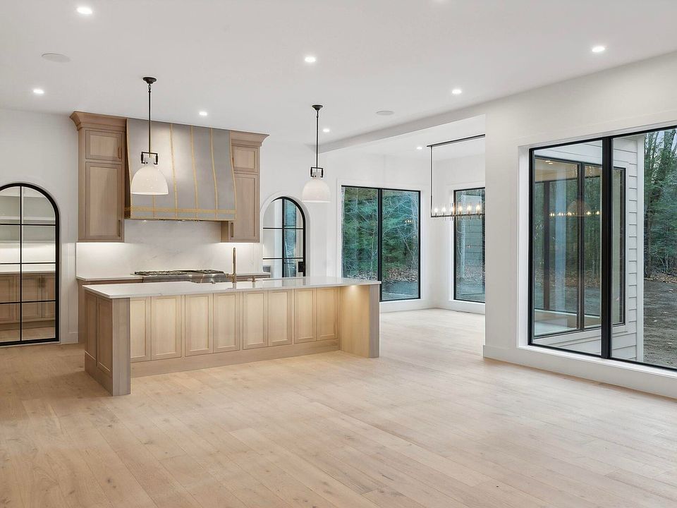 Welcome to a stunning new Brush & Hammer build in the heart of Falmouth! This home melds timeless construction with transitional style to create an ideal blend of luxury modern living. While there are custom details throughout - like the iron arched doors, statement range hood, curved staircase, and amazing theater room - they are anchored by the top quality standards that Brush & Hammer are known for; expanses of Marvin windows, Hardie siding, and exceptional design carpentry in the cabinetry, built-ins, and millwork. The soaring great room features a wood burning fireplace, built-ins, and an impressive 4-panel sliding door that opens to a vaulted deck. An entertainer's dream, the designer kitchen boasts a 48' Thermador rangetop, double wall ovens, a dual-entry pantry with built-in coffee station, and a statement dry bar. The first-floor primary suite is nothing short of enviable, with a wrap-around bespoke closet and fluted wood vanities and cupboard in the spa-like bath. Upstairs, the additional three bedrooms are all full suites with walk-in closets. A private office and highly functional mudroom are perfect for the busy household. Just minutes from Town Landing, all of Falmouth's amenities, and easy access to Portland and beyond.