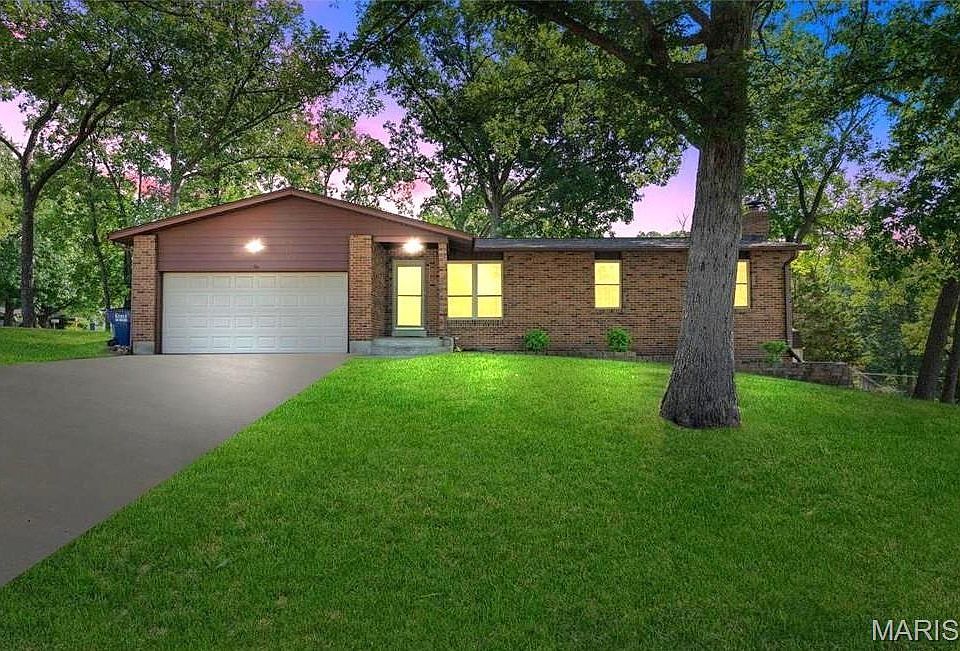 Gorgeous 3-bed/2-bath all brick ranch home on a HALF-ACRE lot in unincorporated St. Charles County! This home boasts beautiful hardwood flooring in the living room and hallway and crown molding throughout the main living areas. The updated kitchen comes complete with granite countertops, 42" custom cabinetry, and stainless-steel appliances. The dining room features a wood burning fireplace, and a brick accent wall. All 3 bedrooms have new carpeting, and the master bedroom suite features an updated full bathroom. In the freshly carpeted walk-out basement, you'll find a home office/home gym and a large recreation room. The recreation room features an amazing stone bar and wood burning fireplace! Also, don't miss the huge fenced-in backyard featuring a large shed and composite deck. Located just minutes of HWY 70, this one, won't last long!