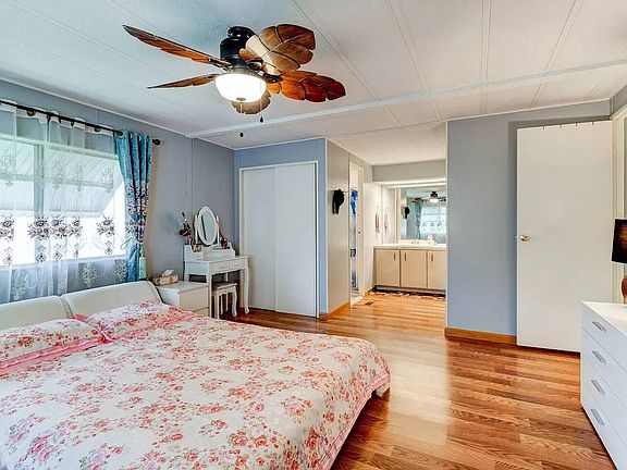 Beautiful recently remodeled home in Carriage Cove 55+ community. Enjoy the freshly redone: floors, walls, kitchen, hot water heater, appliances, and more. Take advantage of the extra space in the Florida room which is under air. Lot rent is only $750. Great location!