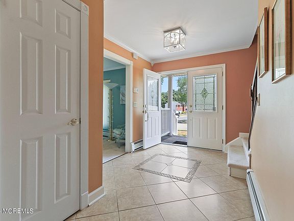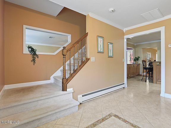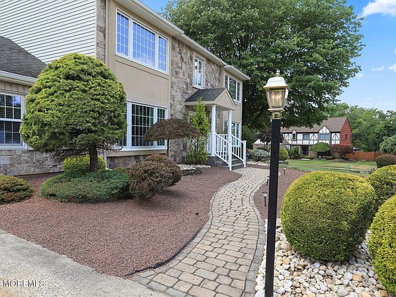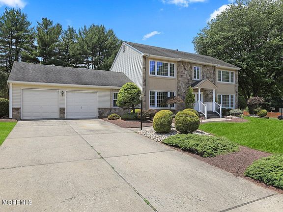 Discover luxury living in one of Marlboro Township's premier developments with this expanded custom colonial. The stunning stucco and stone front, paver walkway, and professional landscaping create an inviting curb appeal. Inside, the formal living and dining rooms exude elegance, while the newer gourmet kitchen boasts custom cabinetry, granite countertops, stainless steel appliances, and a tumbled marble backsplash. The step-down family room, open to the kitchen, features a wood-burning fireplace and gleaming hardwood floors, perfect for cozy gatherings. An impressive 23x16 great room addition offers hardwood flooring, a two-story vaulted ceiling, skylights, and a palladium window, creating a breathtaking space for entertaining. The first floor includes a fifth bedroom adjacent to a full bath, ideal for guests or multi-generational living. An office/den with a palladium window and recessed lighting provides a comfortable workspace. The master bedroom suite features dual closets and a stunning master bath with a frameless shower and custom tile. Additional spacious bedrooms offer ample closet space, and the finished basement provides extra living or recreational space. Enjoy outdoor living on the Trex-like deck overlooking a level, fenced backyard. The home also includes baseboard water heat in most areas, a newer roof, and underground sprinklers. Conveniently close to shopping and NYC transportation, this home is a must-see to truly appreciate its beauty and functionality.