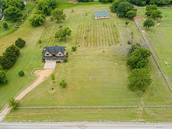 Come with me through the vineyard, let's take A Walk In The Clouds. This 5 acre property has an overly built European cottage constructed of Insulated Concrete Forms for strength, durability, well-sealed, well-insulated. The dining/living/kitchen functions blend easily in an open/airy/space. Roomy enough for large gatherings/cozy enough for just you. Kitchen has granite countertops, pot filler, pantry, Dumb Waiter to bring groceries from garage. Enjoy the sunrise on the balcony, cozy up in the Inglenook in the living room. Murphy bed in downstairs bedroom/office. Plenty of well-thought-out storage in large closets. Sierra Pacific casement wood windows, new roof, foam insulation. 1,200 sf shop has den/office/tack room, plenty of cabinets, work counters, h2o, utility sink, toilet, spray foam insulation, a wine making room, the wine equipment is negotiable. Patio has Sunsetter remote awning. Country critters will feel right at home in 50x130 fenced pen. 30 minutes to OKC, 10 to Norman/OU.