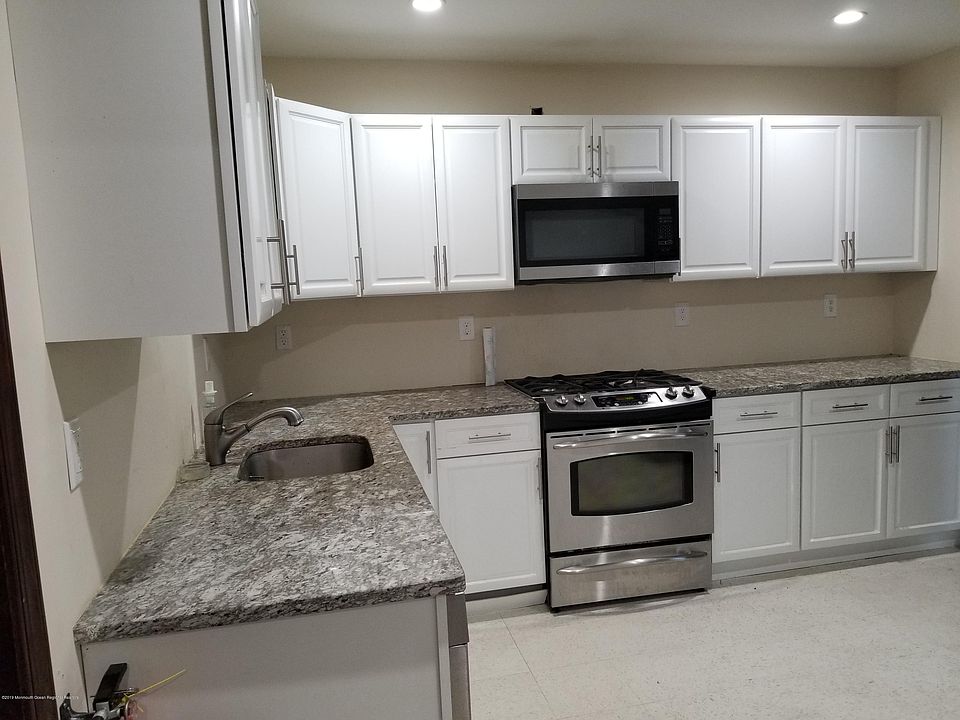 Beautiful, fully renovated, bright & quiet 3 bed 2 bath home w/ 2 full kitchens (on 2 separate floors) w/ white cabinets & granite countertops. Perfect mother daughter. 1st floor features a foyer, LR, bedroom, full bath & spacious kitchen w/ pantry & sliding doors leading to an outside roof covered patio. 2nd floor boasts amazing living room, 2 spacious bedrooms, full bath and a bonus room w/ walls full of windows (can be used as veranda/office/playroom/storage). Additional storage in the attic. Coin operated laundry conveniently located at the back of the house. Security cameras around the house, Nest system, central AC, at least 3 parking spots. Double screened windows make this home a quiet oasis w/ great access to NYC, shops and restaurants. Gas, garbage, and 1 GB Xfinity internet incl