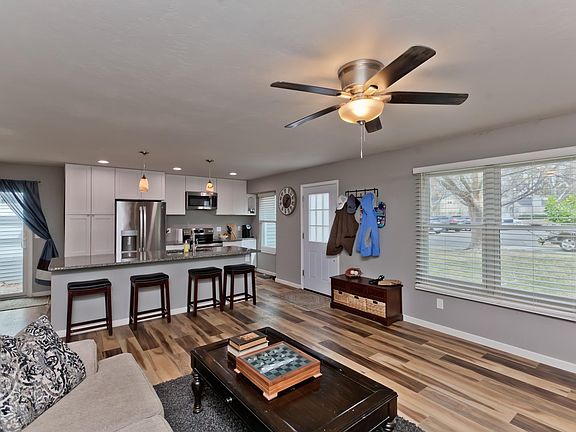 - Ceiling Fan(s), Kitchen/Dining Combo, Main Level Primary, Walk-In Shower, Window Treatments