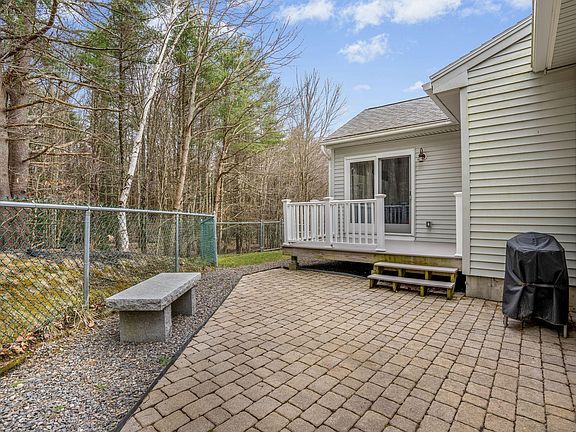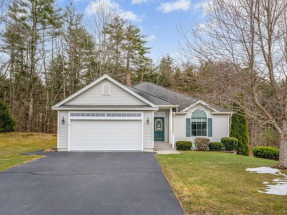 2 Chantelle Way - Open House 4/13 11:00-1:00 and 4/14 2:00 - 4:00 - this charming, custom-built home is located in a desirable Saco neighborhood with easy access to I95, making Portland attractions just a quick commute away. Even closer is Saco and Biddeford's vibrant and growing downtown district, which offers an abundance of local shopping, restaurants, and breweries for your enjoyment. If you're a nature or walking enthusiast, the beautiful Saco Heath Preserve is about a mile away and it won't disappoint. Saco Bay's 7 miles of sandy beaches are within a 10-minute drive as well - truly a wondaful location! This home offers one-level living at its finest, an open concept floorplan, and showcases cathedral ceilings throughout. The kitchen provides ample cabinet and counter space, an oversized pantry for plenty of storage, and recently updated appliances. An elevated bar top peninsula separates the kitchen from the dining area, and the living room is centered around a warm and inviting gas log fireplace. The large primary bedroom has a walk-in closet and is equipped with an ensuite bath with a jetted soaking tub and separate shower. Servicing the main living space is a second full bath with shower. This bath includes a functional laundry room accessed by a pocket door. The second bedroom is nicely sized and situated away from the primary for privacy. In need of flex-space? The sun filled bonus room overlooks a wooded backdrop and can serve as an exercise room, sunroom or office with built-in desk/bookcase. Additional amenities include efficient heat pump heating and cooling, a 2Car garage with direct entry, full basement, fenced-in deck and patio, perennial gardens and storage shed.